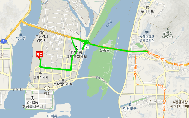 위의 경우는 이동하는 지역으로 찾아야 할때 사용시 유용한 출발 도착지 검색입니다. 부산 강서구 마을버스 14번 노선만을 이용하기 보다는 환승을 하거나 하는 경우 좀 더 도움이 됩니다. 임의의 장소를 출발 도착지로 놓고 검색해보면 소요시간과 환승 정보등이 자세하게 나옵니다. 원하는 교통수단을 선택하고 소요시간 등의 결과를 보시면 됩니다.