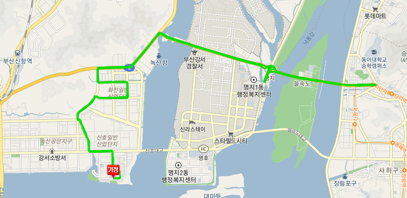 위의 경우는 이동하는 지역으로 찾아야 할때 사용시 유용한 출발 도착지 검색입니다. 부산 강서구 마을버스 9번 노선만을 이용하기 보다는 환승을 하거나 하는 경우 좀 더 도움이 됩니다. 임의의 장소를 출발 도착지로 놓고 검색해보면 소요시간과 환승 정보등이 자세하게 나옵니다. 원하는 교통수단을 선택하고 소요시간 등의 결과를 보시면 됩니다.