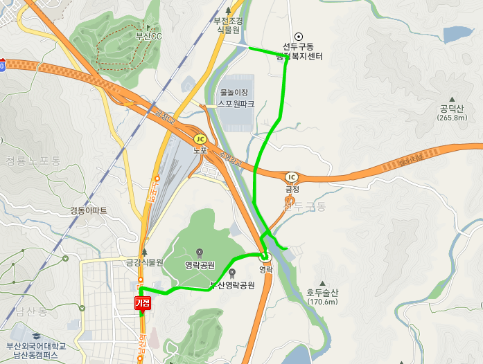 위의 경우는 이동하는 지역으로 찾아야 할때 사용시 유용한 출발 도착지 검색입니다. 부산 금정구 마을버스 2-1번 노선만을 이용하기 보다는 환승을 하거나 하는 경우 좀 더 도움이 됩니다. 임의의 장소를 출발 도착지로 놓고 검색해보면 소요시간과 환승 정보등이 자세하게 나옵니다. 원하는 교통수단을 선택하고 소요시간 등의 결과를 보시면 됩니다.