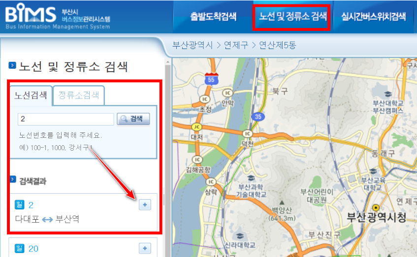 위의 경우는 이동하는 지역으로 찾아야 할때 사용시 유용한 출발 도착지 검색입니다. 부산 수영구 마을버스 2-1번 노선만을 이용하기 보다는 환승을 하거나 하는 경우 좀 더 도움이 됩니다. 임의의 장소를 출발 도착지로 놓고 검색해보면 소요시간과 환승 정보등이 자세하게 나옵니다. 원하는 교통수단을 선택하고 소요시간 등의 결과를 보시면 됩니다.