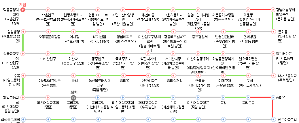 | 배차간격 | 평 일 : 22~133분 간격 토요일 : 22~133분 간격 공휴일 : 42~133분 간격 |