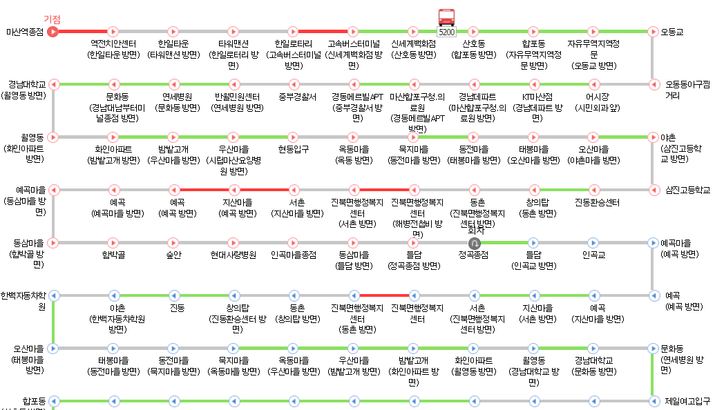 | 월 ~ 일 | 마산역종점 | 정곡종점 |