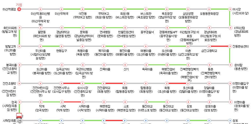 | 월 ~ 일 | 마산역종점 | 시락정곡종점 |
